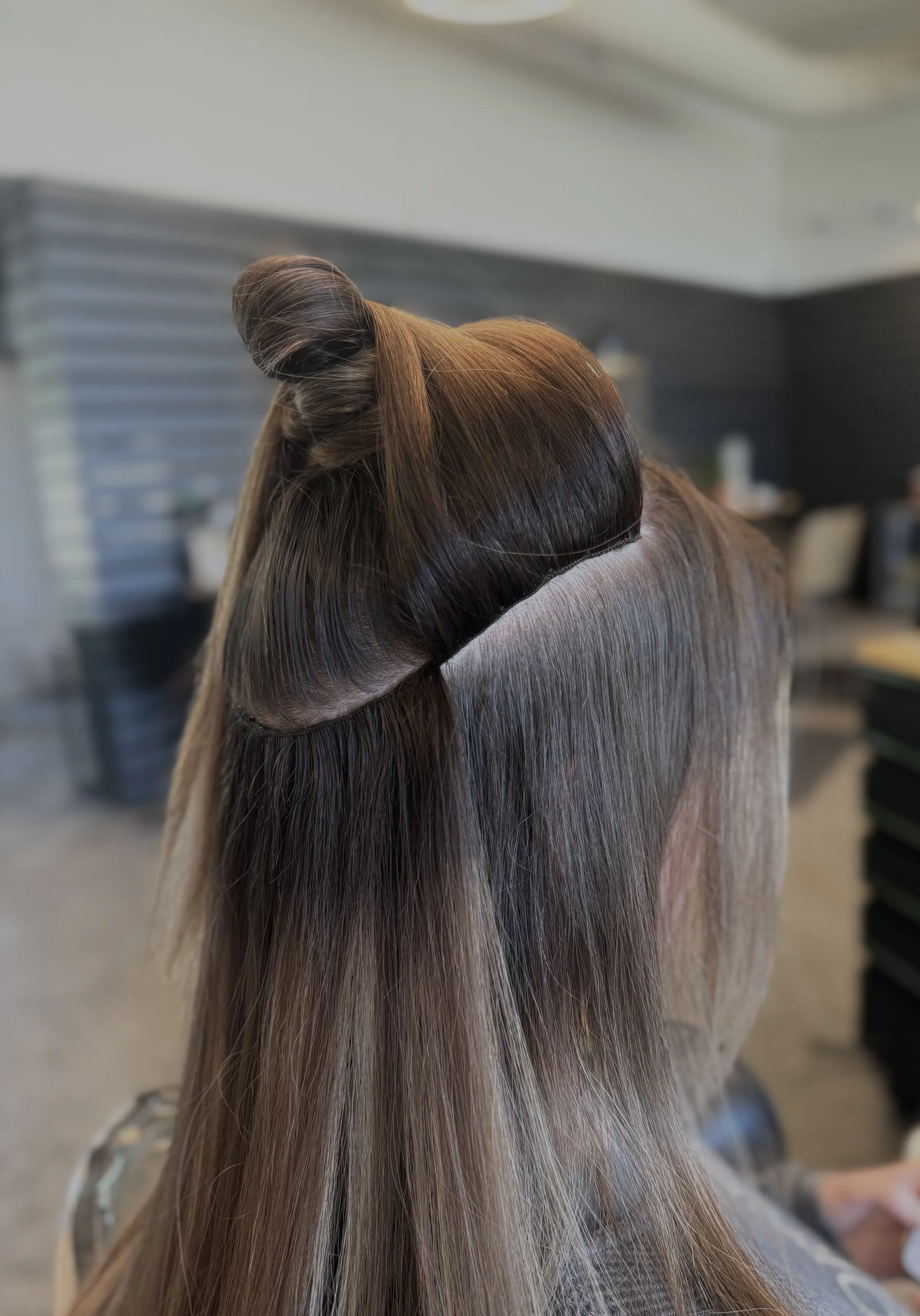 Custom to the clients end goal this service is foil work only around crown of head and hairline